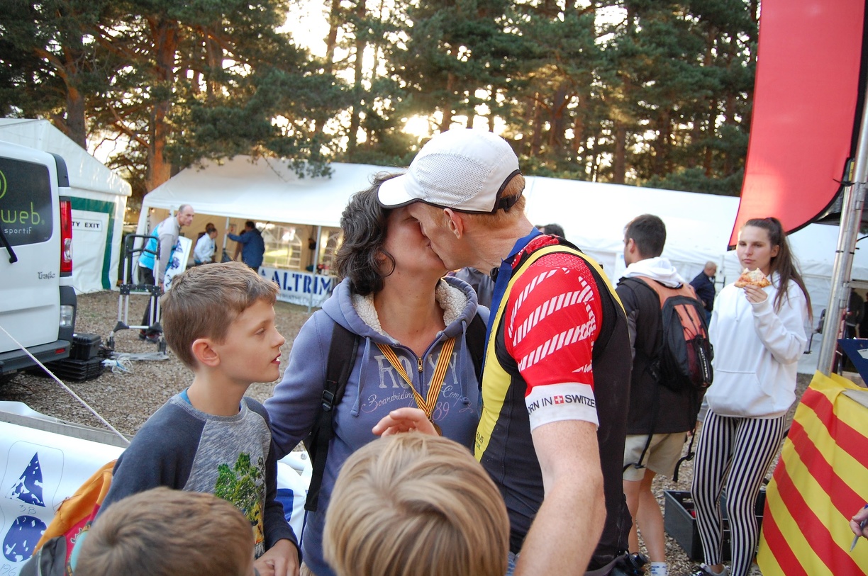 The next day, it's paella time. I miss the medals ceremony while standing in the queue for the paella :). My legs don't feel bad, not sore at all... After a race like this, it should be almost impossible to walk... I start to feel strange. I get the feeling I should have gone faster. If I had taken more risks in the downhills, if I wouldn't have held back so much on the bike, if I hadn't started walking during the run... if if if... I could have ended up on the podium +40... Something I kinda was hoping for that it would be possible. I start to feel disappointed... I learned a lot during the race, I have gained experience, but for what... will I ever participate in a race like this again? This was my chance to shine... The training was hard, I spent so much time on the bike. Time I could spend with the family, working in the garden, doing stuff in the house... Is it really all worth it? 2 months later, I am still not sure. I still need to convince myself that I accomplished something amazing. Which it really was. I had very little climbing training (most of my rides involved water (canal or rain) and lots of wind), I had very little downhill training (bridges don't really count...), the bike and run track was too much unknown to me. But still I managed to pull of a great performance. Should I be disappointed I missed the podium or should I be proud? I know I should be proud and happy, but that's easier said than done... One thing I am most proud of is that I believe I didn't neglect my family too much during preparation: I did most of my trainings in the morning after dropping the kids off at school, so I would be home by noon to work, get them back from school, prepare diner and work again in the evening or go to my Sporttherapist course I had every Wednesday evening. I hardly trained in the weekend so I could spend time with my loved ones. But even though I had a lot of time in the morning, it was taking more energy than I expected. Not sure I will be able to manage the same training program again... Given all of this, I should definitely be happy that I finished one of the hardest races in the world (in 21st place!) and that I really enjoyed doing it. I should remember and cherish that! Looking back, I also had a lot of fun during the training, for which I should be grateful as well! And although the descents on the bike track were a bit dangerous, the whole race was amazing, from start to finish! I would do it again (if I didn't have to train so hard for it :) - but that makes it even more rewarding to finish it :D).